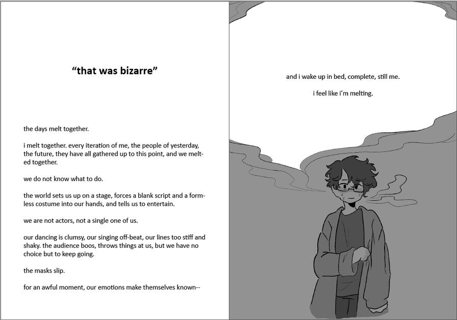 Felix Hustead is a writer and artist based in Westerville, Ohio. In the 13th annual “Celebrate the Arts” writing contest, they placed second in their age range for their short story, “freya’s story,” and their work has been published in the contest’s writing contest book, as well as in the ThisWeek newspaper. Felix believes that their best ideas come at night– and they’re only right before midnight hits. As of the time of writing, they are currently enrolled at the Columbus College of Art and Design, pursuing a degree in Comics and Narrative Practice.